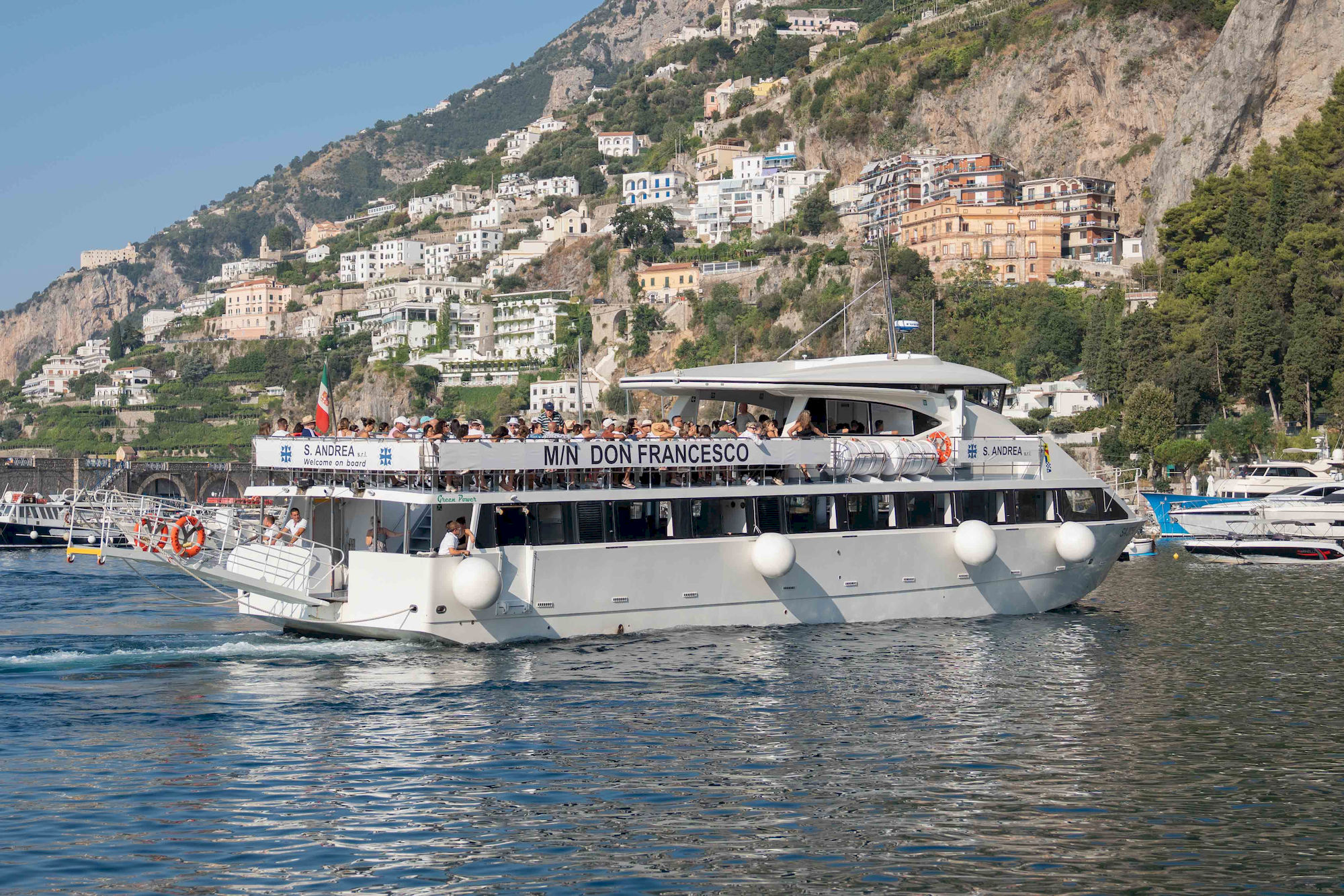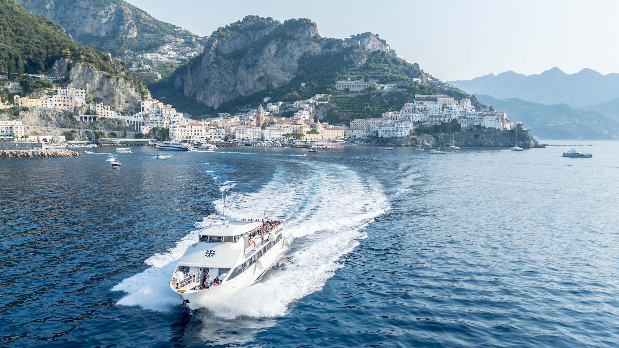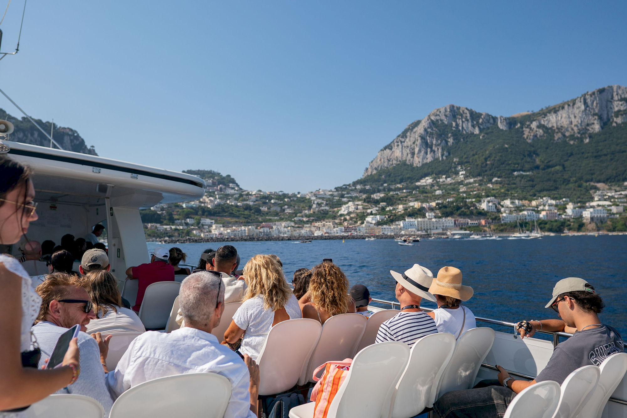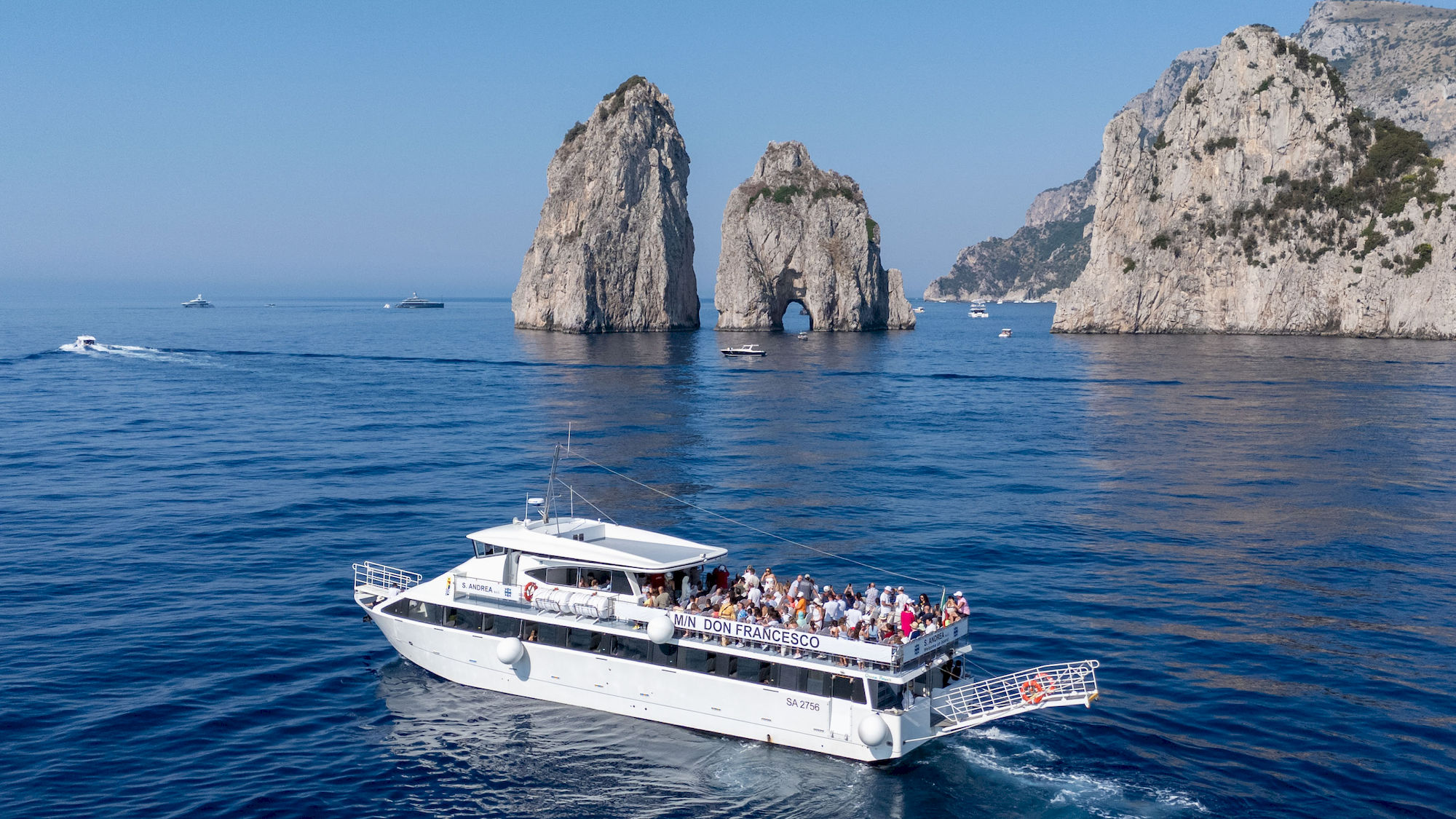 Raggiungi Capri con noi. Parti dalla Divina Costiera e vivi l’emozione di un comodo viaggio in barca verso Capri, ammirando i suoi famosi Faraglioni e il mare cristallino.